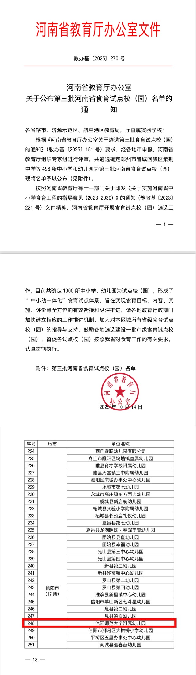 喜报!信阳师范大学附属幼儿园入选河南省第三批食育示范园名单