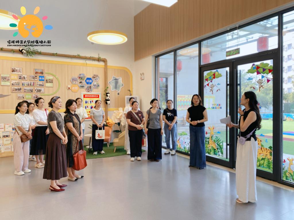 信阳市胜利路学校副校长汤莹莹带领参访教师首先发言,对师大附幼的教育理念给予高度评价,尤其赞赏园所打造的游戏环境——既贴合幼儿需求、尊重不同年龄段孩子的兴趣特点,又让每个角落都充满教育温度;班级内独具特色的课程内容,更成为众人一致认可的学习范本。