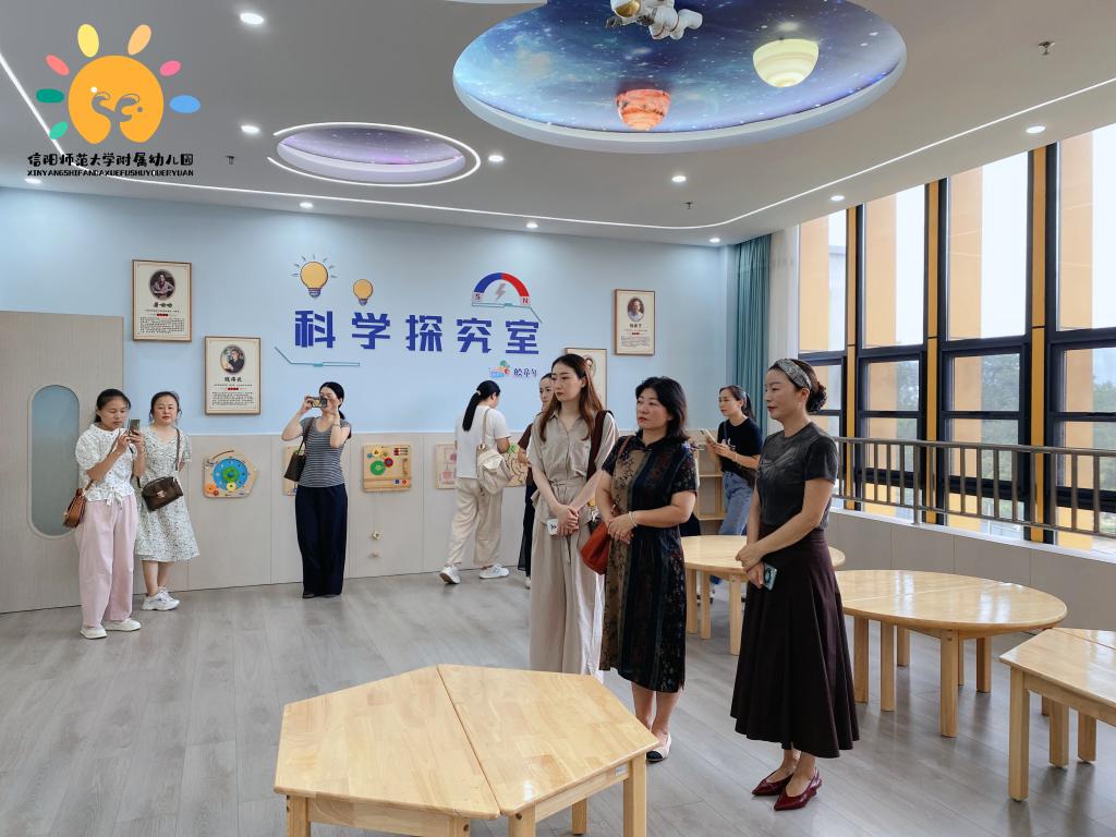 为深化幼小教育衔接合作、推动资源共享,充分发挥示范园辐射引领作用,积极探索学前与小学教育协同发展新路径,2025年9月4日,信阳市胜利路小学教师代表走进信阳师范大学附属幼儿园,与园所教师围绕“幼小衔接工作实践与优化”开展了一场深度交流活动,共探幼儿平稳过渡的有效路径。