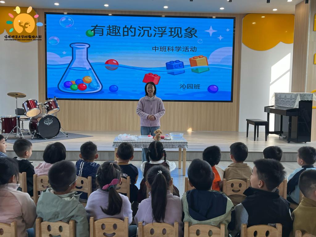 沁园班蔡葳老师执教《有趣的沉浮现象》,手持实验器材巧妙引导,以精准示范与循循善诱,让幼儿在动手操作中点燃探索未知的好奇心。