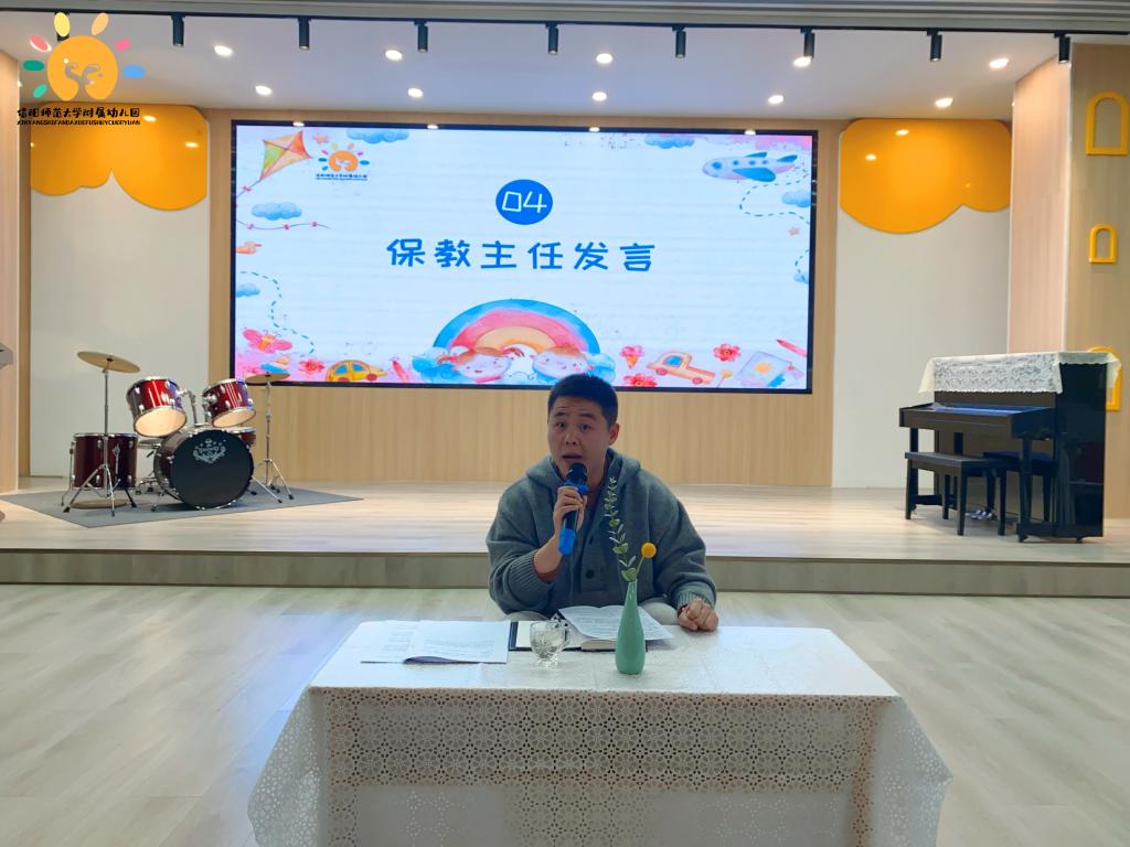 郑晶晶围绕本学期园务工作计划及主题活动安排作系统通报,她立足幼儿园发展全局,从教育教学提质增效、特色课程创新构建、家园共育深度推进等关键维度进行全面部署,以清晰务实的规划与精准可行的路径,为新学期工作锚定方向。同时,她就“大班幼儿免保健费用”这项惠民工作的落地进程,向家委作了郑重通报,详尽说明了政策依据、当前进展与后续规划,充分展现了园所科学决策、公开透明的管理原则。她最后强调,家园双方需目标同向、行动同步,合力谱写育人新篇章。