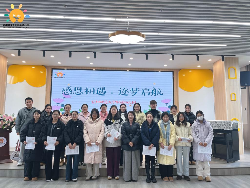 园长助理张斓为实习生们颁发了实习鉴定表,这不仅是对她们这段时间实习工作的认可,更是对她们未来职业发展的鼓励。愿各位实习生带着在信阳师范大学附属幼儿园收获的知识、技能与爱,在幼教事业的道路上逐梦前行。信阳师范大学附属幼儿园也将继续为更多幼教从业者提供成长与发展的平台,携手共育未来栋梁!