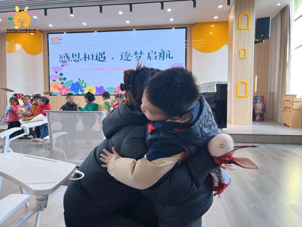 最暖心的环节如期而至。小朋友们手捧着精心准备的小礼物,迈着稚嫩的脚步走向实习生姐姐,用甜甜的笑容、大大的拥抱表达着不舍之情,一句句“姐姐老师再见”“姐姐我爱你”,让现场充满了童真与温情,也让实习生们感受到了来自孩子们最纯粹的爱意。