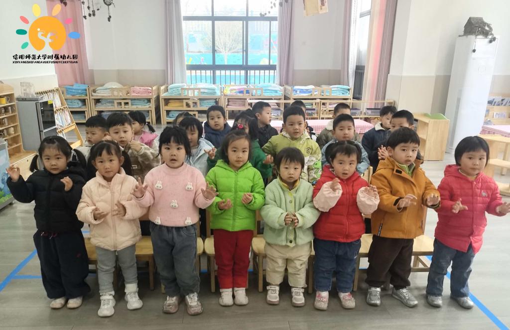 秋实班孩子们的手势舞—《宝宝不怕冷》,通过“北风呼呼”“雪花飘飘”的动作,让幼儿直观感受大雪节气多风、降雪的特点,轻松理解节气常识。同时传递“运动抗寒”的理念,帮助幼儿克服对寒冷的抵触,引导他们主动参与锻炼,养成爱运动、不怕冷的健康习惯。