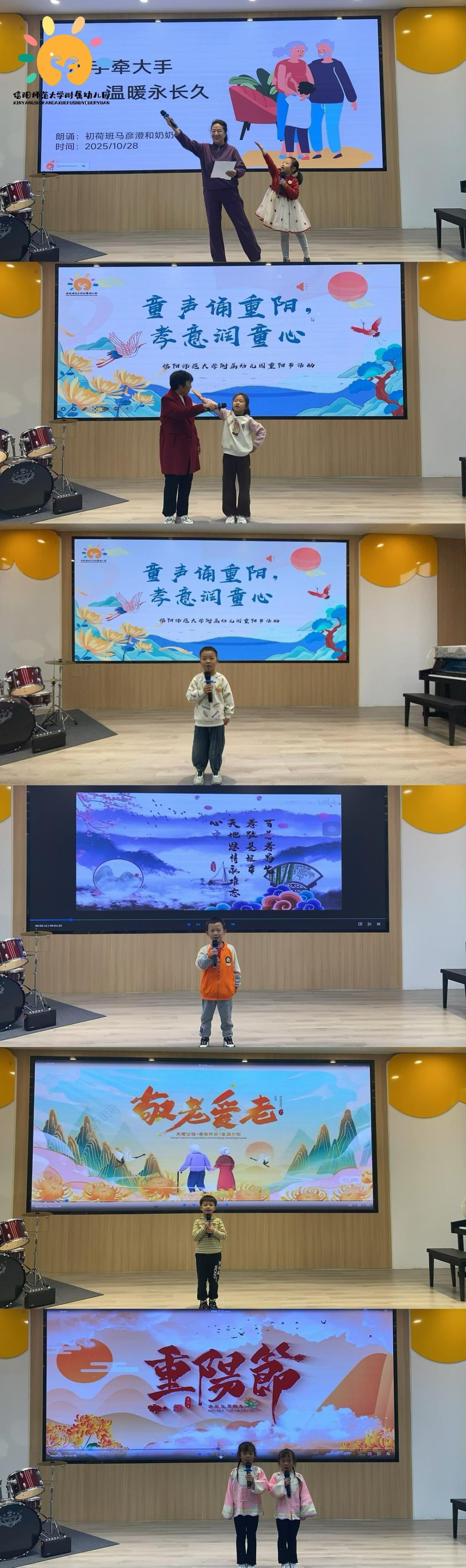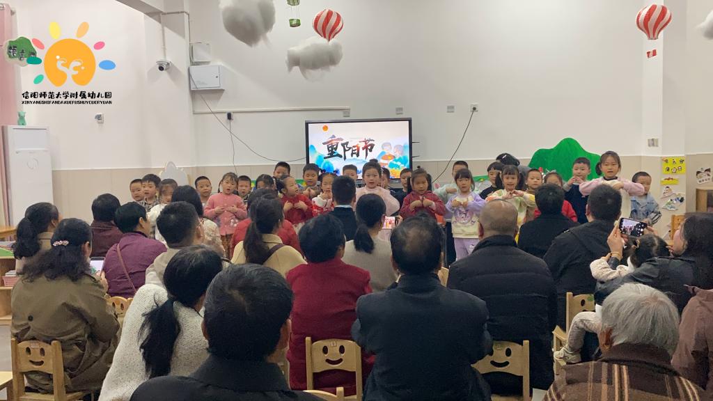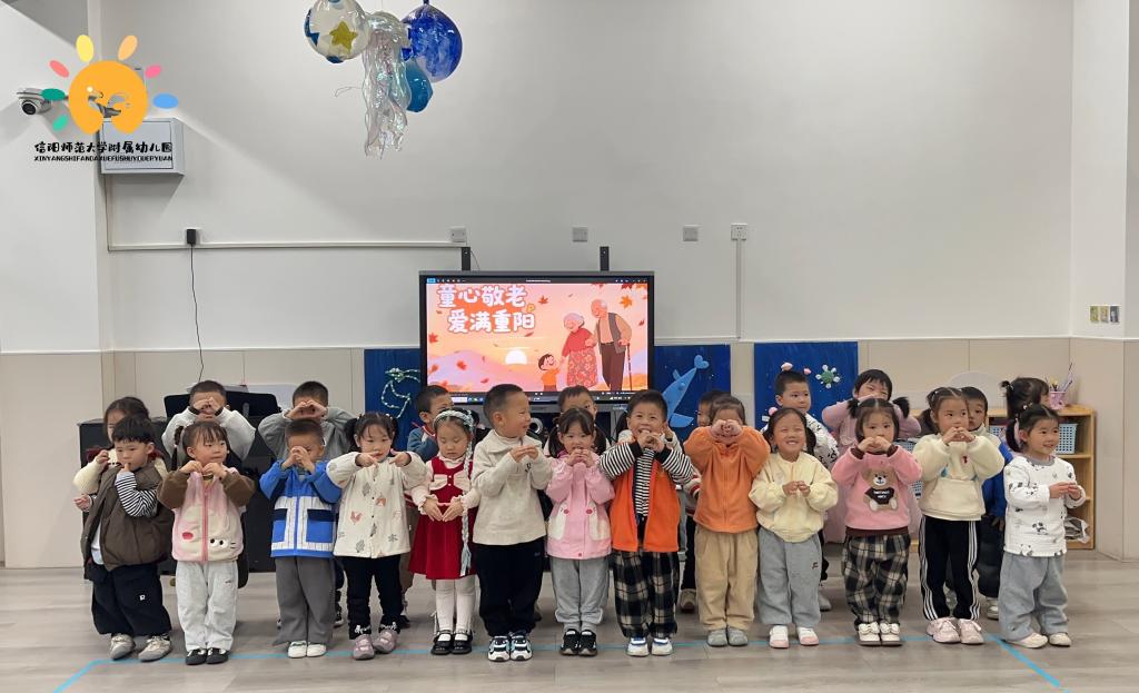 金秋送爽,丹桂飘香。为切实传承中华优秀传统文化,大力弘扬孝亲敬老的传统美德,10月29日下午,信阳师范大学附属幼儿园精心组织开展“童声诵重阳,孝意润童心”重阳节系列主题活动,让幼儿在亲身参与中深悟孝道文化内涵,以纯真行动传递对长辈的尊崇与关爱,推动中华传统美德在幼儿心中落地生根、薪火相传。