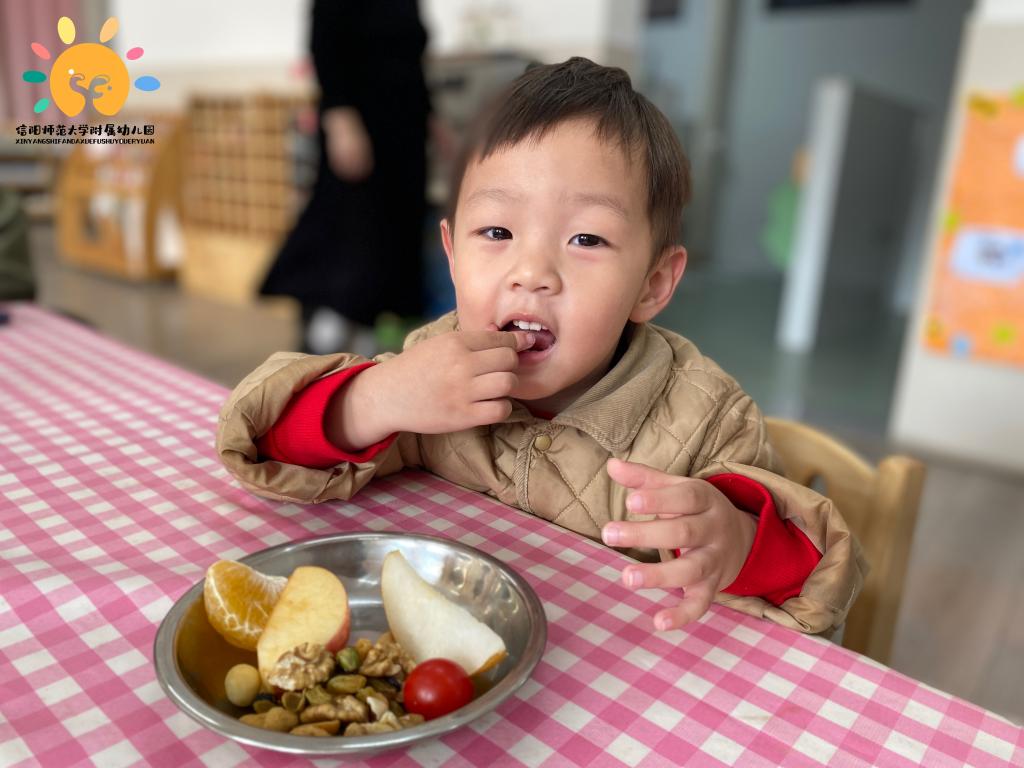 酸酸甜甜的水果搭配香脆营养的坚果,是幼儿园加餐的优选组合。水果富含维生素、有机酸与矿物质,坚果饱含优质蛋白与膳食纤维,既能增进食欲、助力消化,又能补充成长所需能量。活动间隙的加餐时光里,孩子们吃得格外香甜,一张张满足的小脸蛋格外可爱,也为接下来的活动储备了满满活力!