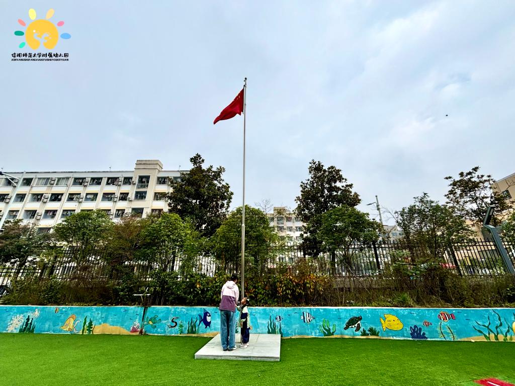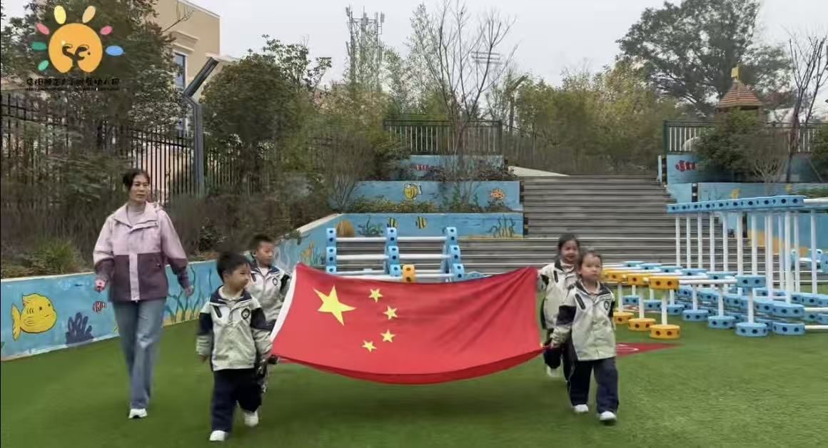 当激昂雄壮的《义勇军进行曲》奏响,鲜艳的五星红旗冉冉升起,迎风飘扬在幼儿园的上空。全体师幼神情肃穆,自觉挺直脊背,行注目礼。老师们眼神坚定,孩子们小脸上满是崇敬,稚嫩的目光追随着国旗缓缓攀升,爱国之情在每个人心中激荡,整个校园都沉浸在这庄严而神圣的氛围之中。
