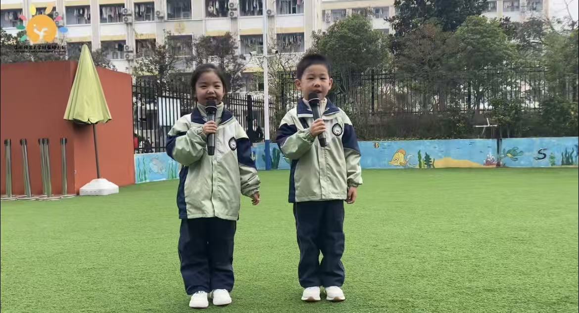 国旗之下,静园班的刘梓琳和张家禾带着满满的热情,分享了自己的阅读故事。“在绘本里,我们认识了会说话的小动物,看到了遥远的星空,还学会了勇敢和善良……”童真的话语里满是对阅读的喜爱,简单的分享传递着阅读的快乐,也让在场的小伙伴们纷纷燃起了读书的热情,掌声此起彼伏。