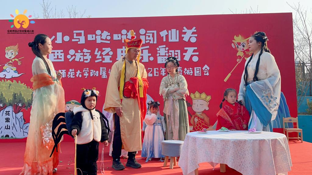 马年启新程,西游乐满园!2026年1月16日,信阳师范大学附属幼儿园“小马哒哒闯仙关,西游经典乐翻天”马年新春游园会圆满举行,全园宝贝与家长化身“西游角色”,在完整复刻的经典剧情与沉浸式趣味闯关中,共度了一段充满欢乐与文化气息的亲子时光。