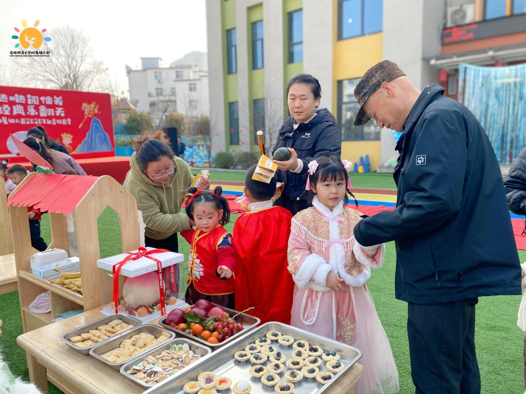 闯关间隙,户外“西游美食市集”香气扑鼻。春蕾班拉丝玉米粒、清风班大圣乾坤丸、秋实班火焰山土豆泥、沁园班蟠桃糯米糍、静园班人参果雪梨、思齐班米酒汤圆、明德班玉兔桂花糕、初荷班冰糖葫芦等8款主题美食,让宝贝们用收集的印章兑换品尝,在舌尖上延续西游之旅的甜蜜与欢乐。